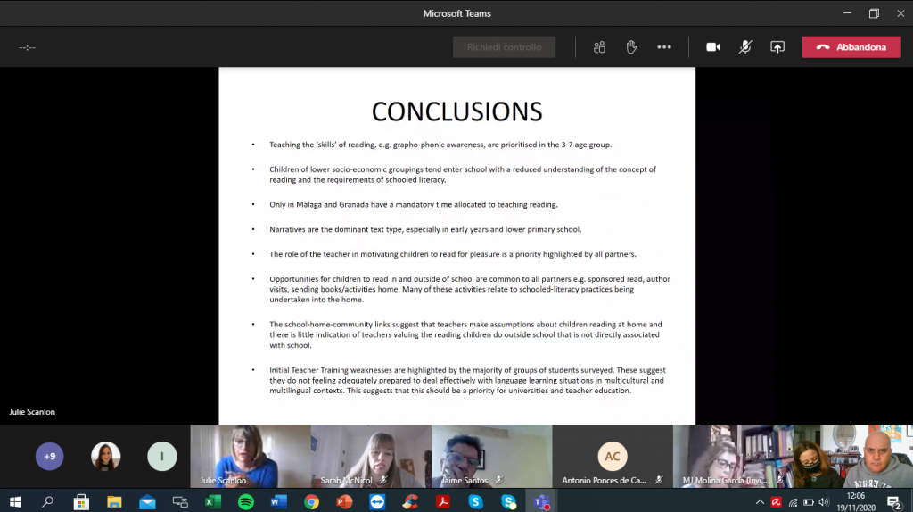 Durante il meeting sono stati presentati, analizzati e discussi i risultati della fase di ricerca propedeutica alla realizzazione del primo Intellectual Output (Toolkit). Le attività di analisi hanno infatti permesso di mettere in luce le buone pratiche adottate in ciascun paese partner per la promozione dell’educazione alla lettura tra i bambini di età compresa tra i 3 ed i 12 anni e le principali metodologie di insegnamento adottate nella Scuola dell’Infanzia e nella Scuola Primaria per il loro avvicinamento alla parola scritta ed il conseguente successivo sviluppo della Literacy (competenza alfabetico-funzionale). La comparazione dei risultati ha inoltre consentito di evidenziare similitudini, differenze, punti di forza e di debolezza in ciascuna realtà, costituendo una preziosa base su cui impiantare lo sviluppo dei contenuti del Toolkit, al quale i partner lavoreranno nei prossimi mesi. Il Toolkit infatti costituirà un utile compendio di attività altamente innovative ad uso degli insegnanti della Scuola dell’Infanzia e della Primaria per la promozione dell’educazione alla lettura tra i loro piccoli studenti, oltreché un valido supporto ai processi di alfabetizzazione.